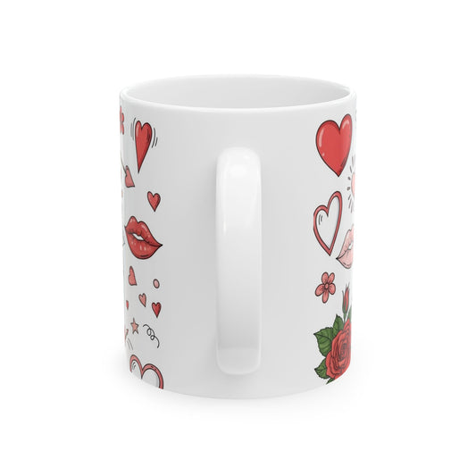 Valentine Doodle Ceramic Mug — Hearts, Arrows & Roses (11oz/15oz)