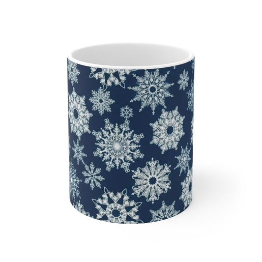 Snowflake Pattern Mug – Blue Winter Holiday 11oz Ceramic Coffee Cup